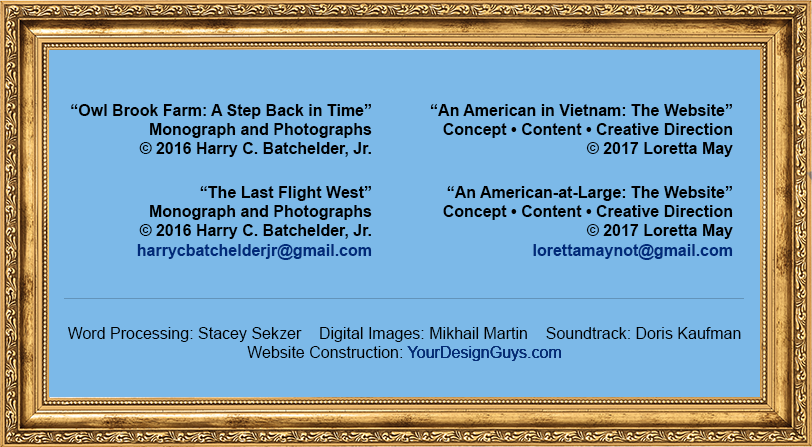 New Year’s Day 2012, retired USAF Special Intelligence Officer Harry Batchelder, having completed post-war visits to old haunts in Laos, Cambodia, and Thailand, realized the time had come to confront his Vietnam bêtes noirs. “Owl Brook Farm: A Step Back in Time” chronicles his decision, preparation, and return to the landscapes and people of South Vietnam.